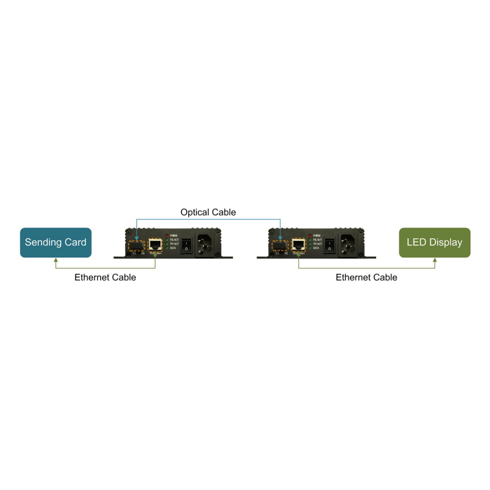 The CVT10 fiber converter offers a cost-effective way of conversion between optical signals and electrical signals for video sources to connect the sending card to the LED display. Delivering a full-duplex, efficient and stable data transmission that is not easily interfered with, this converter is ideal for long-distance transmission.